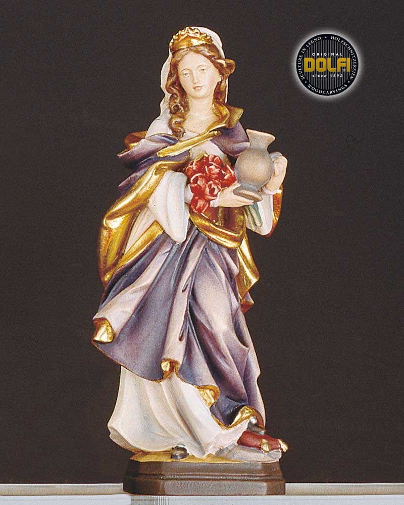 Heiligenfigur "Hl. Elisabeth" Diese Heiligenfigur stammt aus dem Grödnertal und wird mit Echtheitszertifikat geliefert. Sie wird aus Lindenholz geschnitzt und ist von Hand coloriert 30 cm.