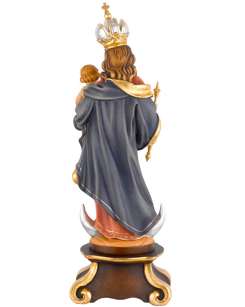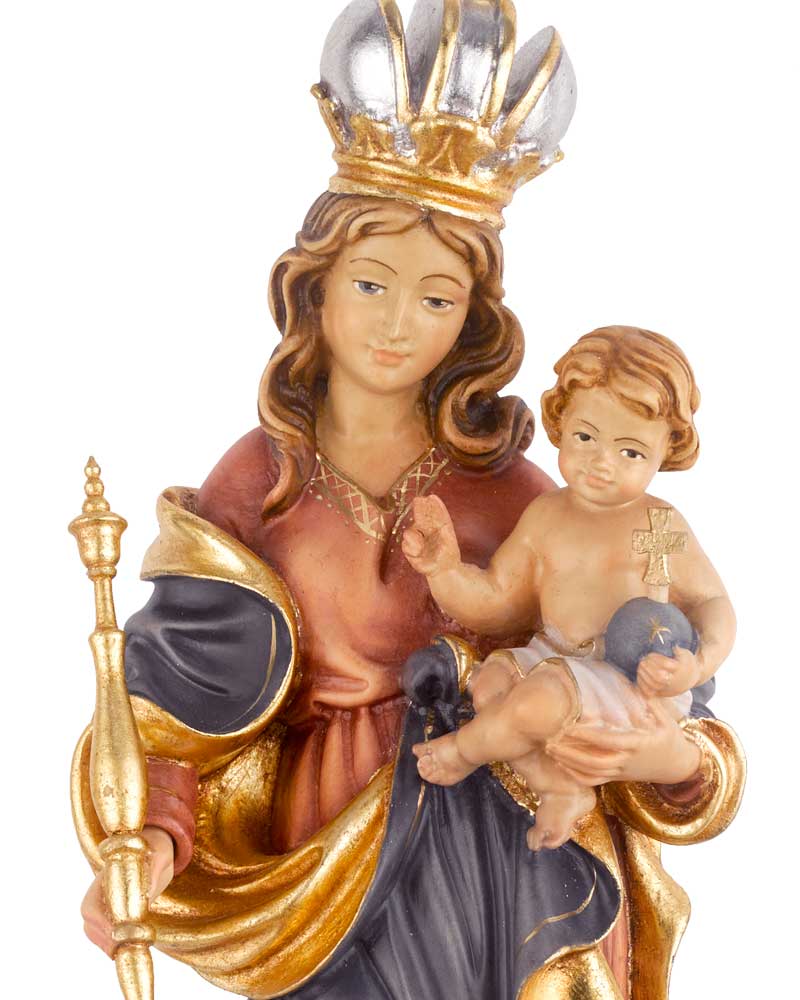 Patrona Bavaria, 26 cm hoch. Diese Heiligenfiguren werden im südtiroler Grödnertal hergestellt und mit Echtheitszertifikat geliefert. Aus Lindenholz geschnitzt, wird die Oberfläche in liebevoller Handarbeit mit hochwertigen Farben bemalt.