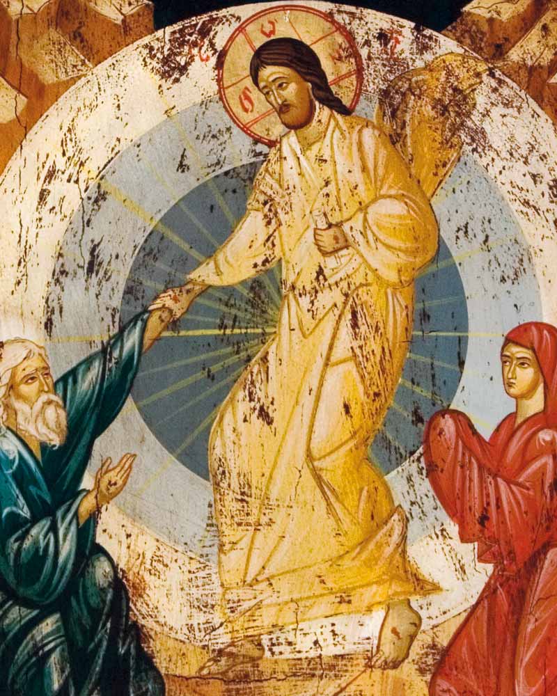 Ikone, 18 x 22 cm mit Motiv "Christi Auferstehung" in antikem Stil, von Hand bemalt.