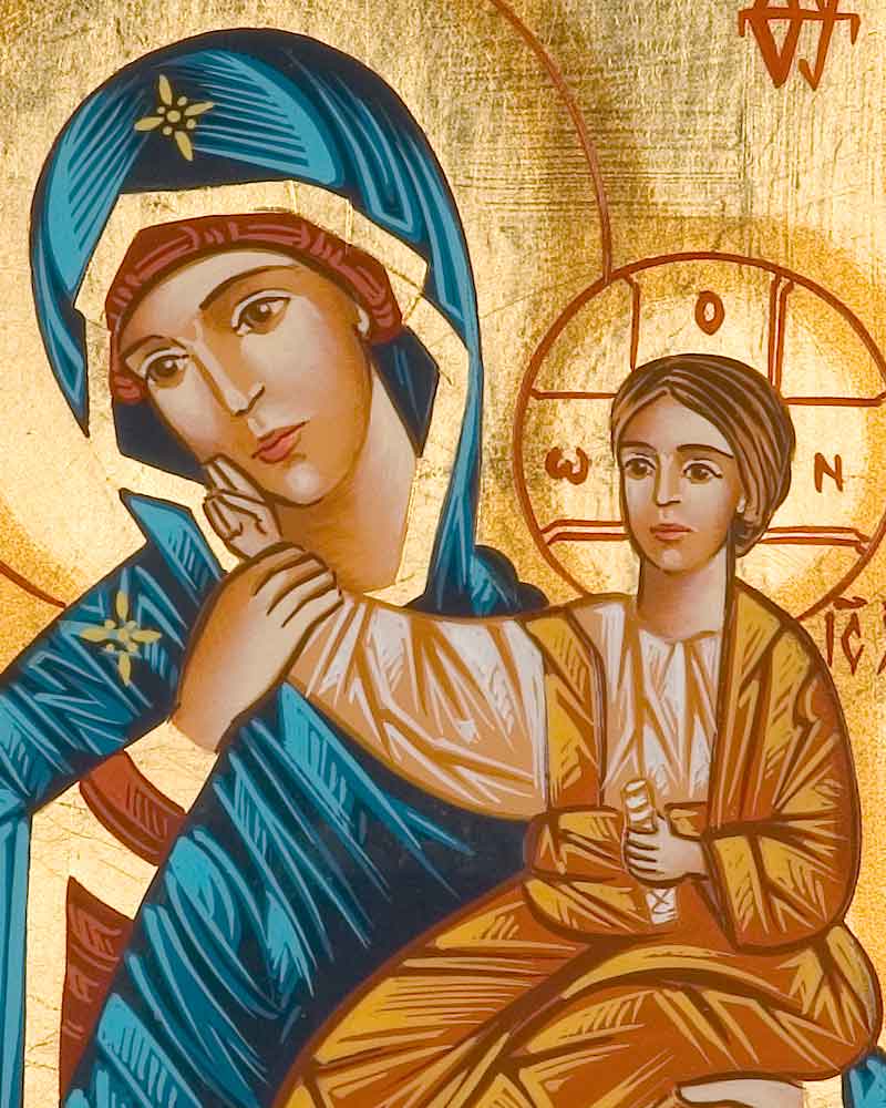 Ikone Maria mit Kind handgemalt 18 x 22 cm im Etui