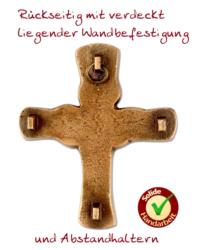 Die Oberfläche dieser Kommunionandenken ist patiniert und anschließend poliert. Ein transparenter Schutzlack verhindert die Oxydation und das Anschmutzen. Die Lieferung erfolgt in einer kostenlosen Einzelverpackung, mit einem Kommunionaufkleber. Die einfach gestaltete Symbolik und Formensprache wurde auf die Vorbereitung der Erstkommunion abgestimmt.