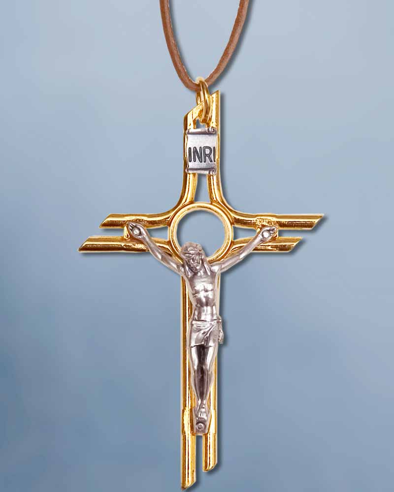 Anhängekreuz 8,5 x 5 cm vergoldet, mit Kordel