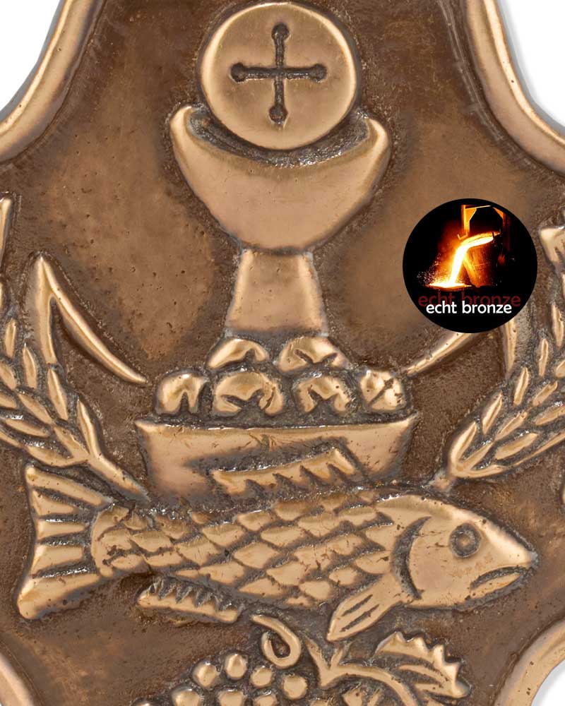 Erstkommunionandenken aus solider Bronze sind anspruchsvolle Geschenke mit bleibendem Wert und Zeichen der Erinnerung. Die einfach gestaltete Symbolik und Formensprache wurde auf die Vorbereitung der Erstkommunion abgestimmt .