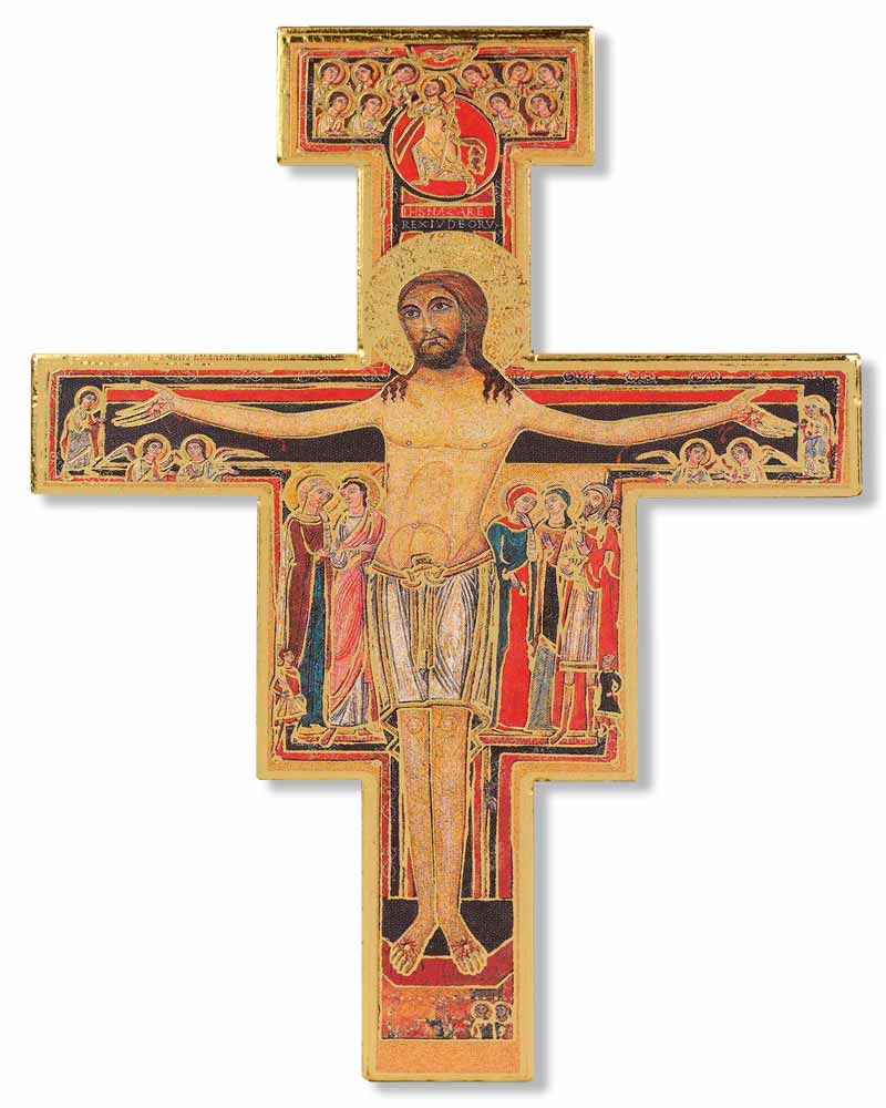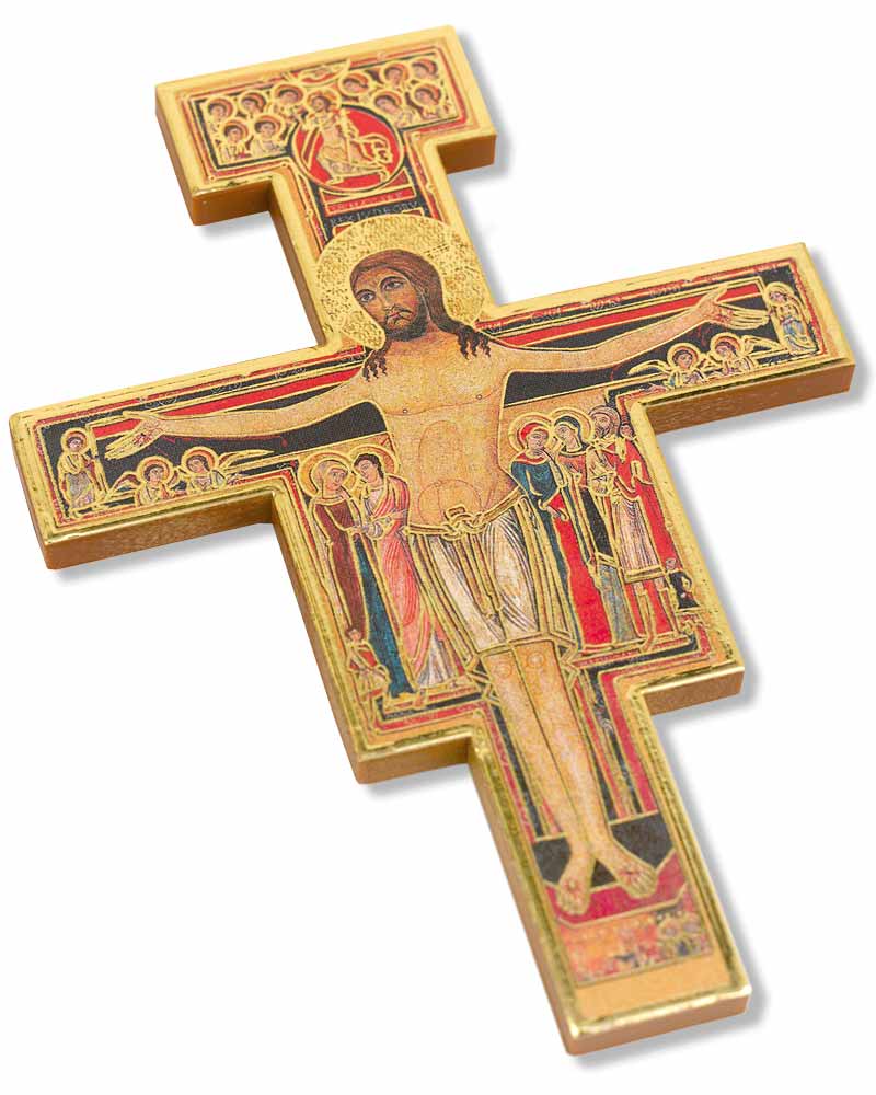 Franziskuskreuz 11,5 x 8 cm Holz Colordruck gold