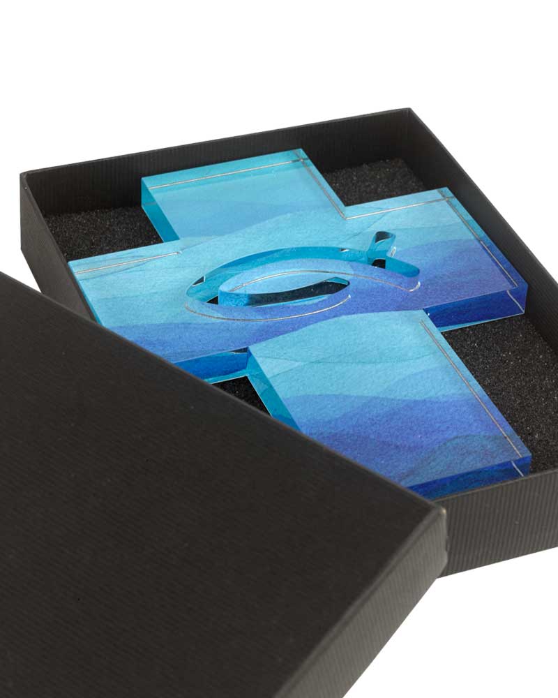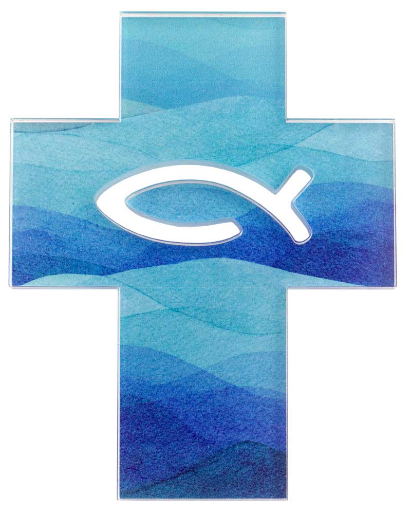 Kreuz Acrylglas 11,5x14,5 cm Fisch-Symbol durchbrochen