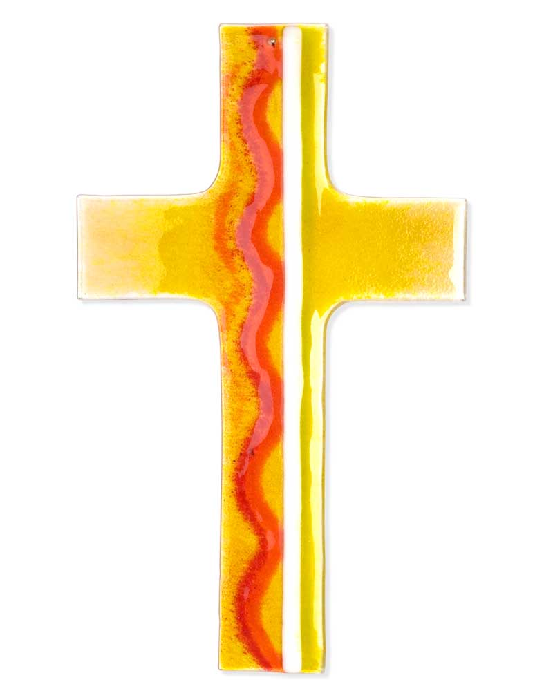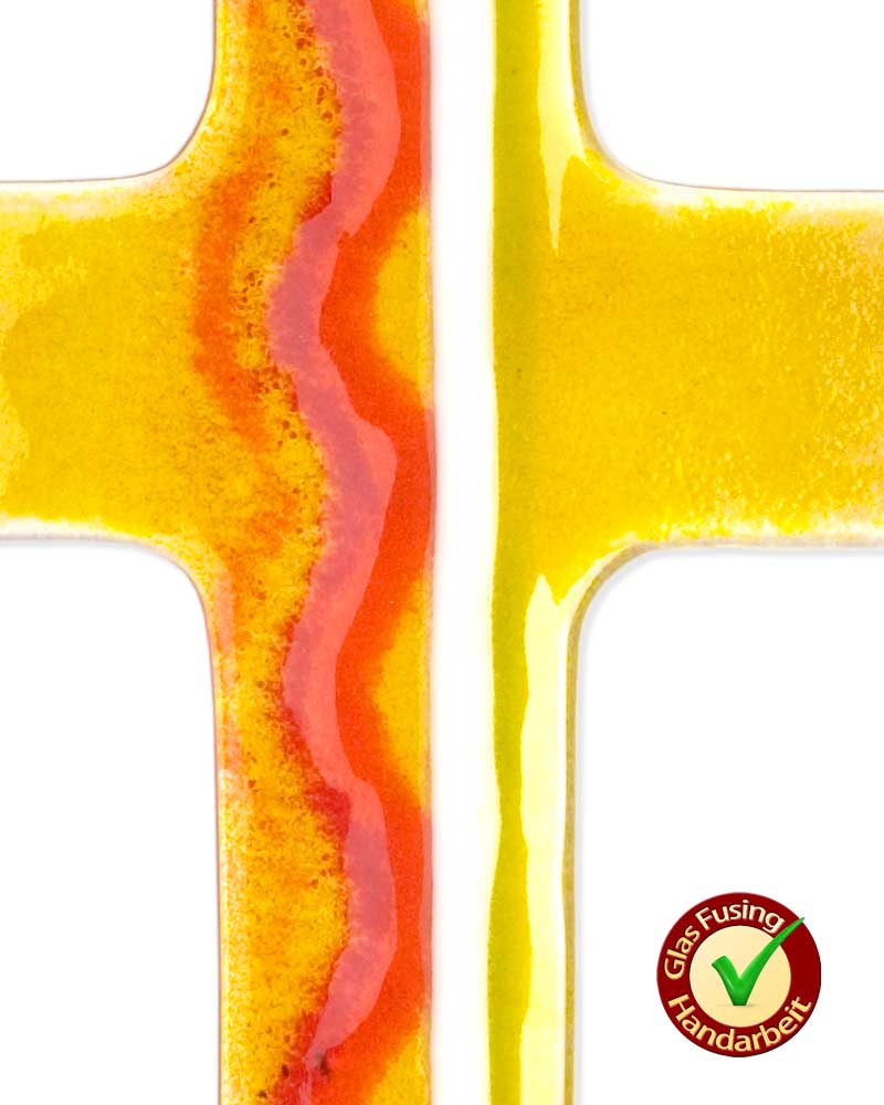 Glaskreuz solide 24 x 40 cm Fusing, rot, gelb, weiß