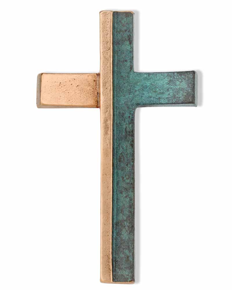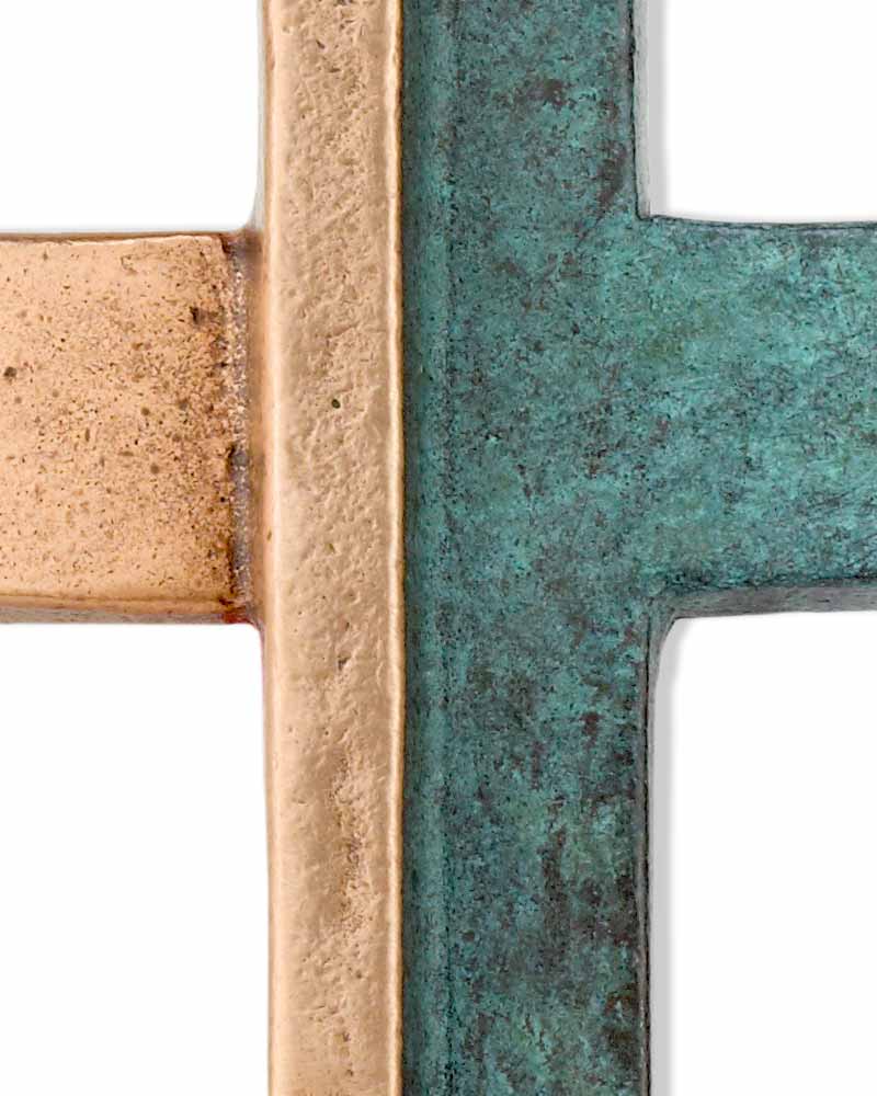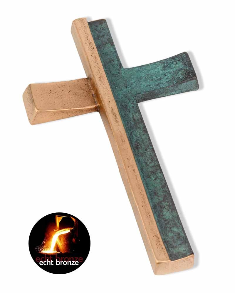 Schmuckkreuz Bronze 14 x 8 cm - auf einer Seite grün patiniert