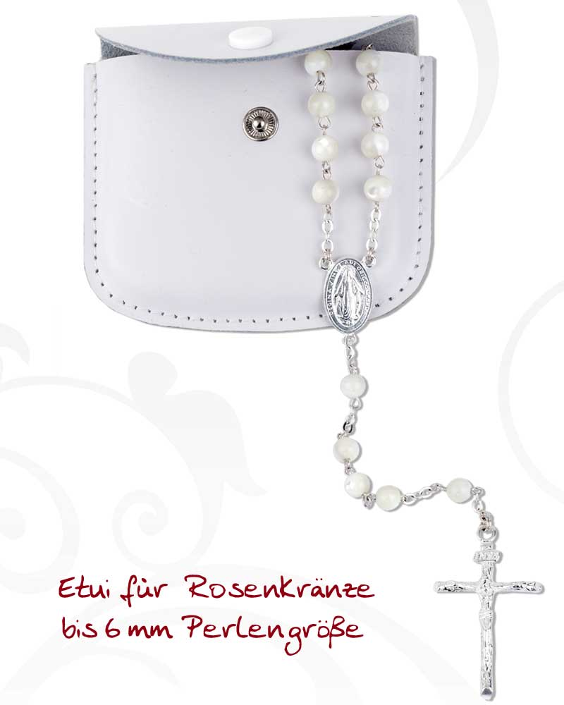 Etui für Rosenkranz aus Rindsleder weiß 7 x 6 cm