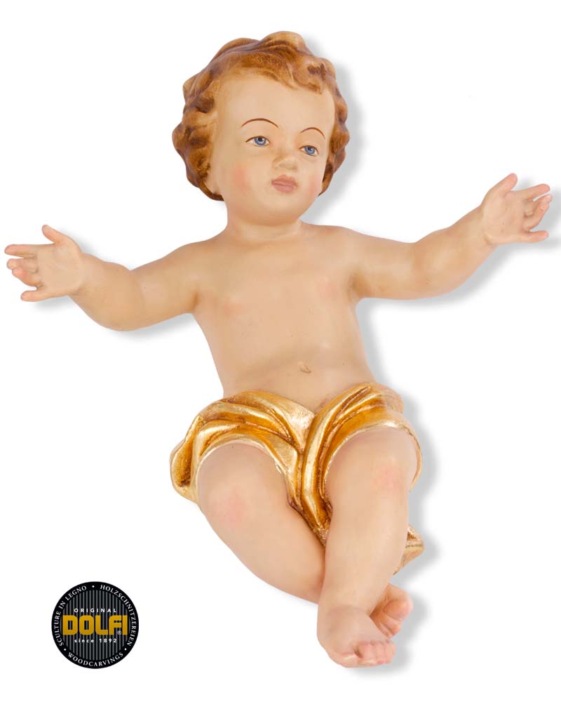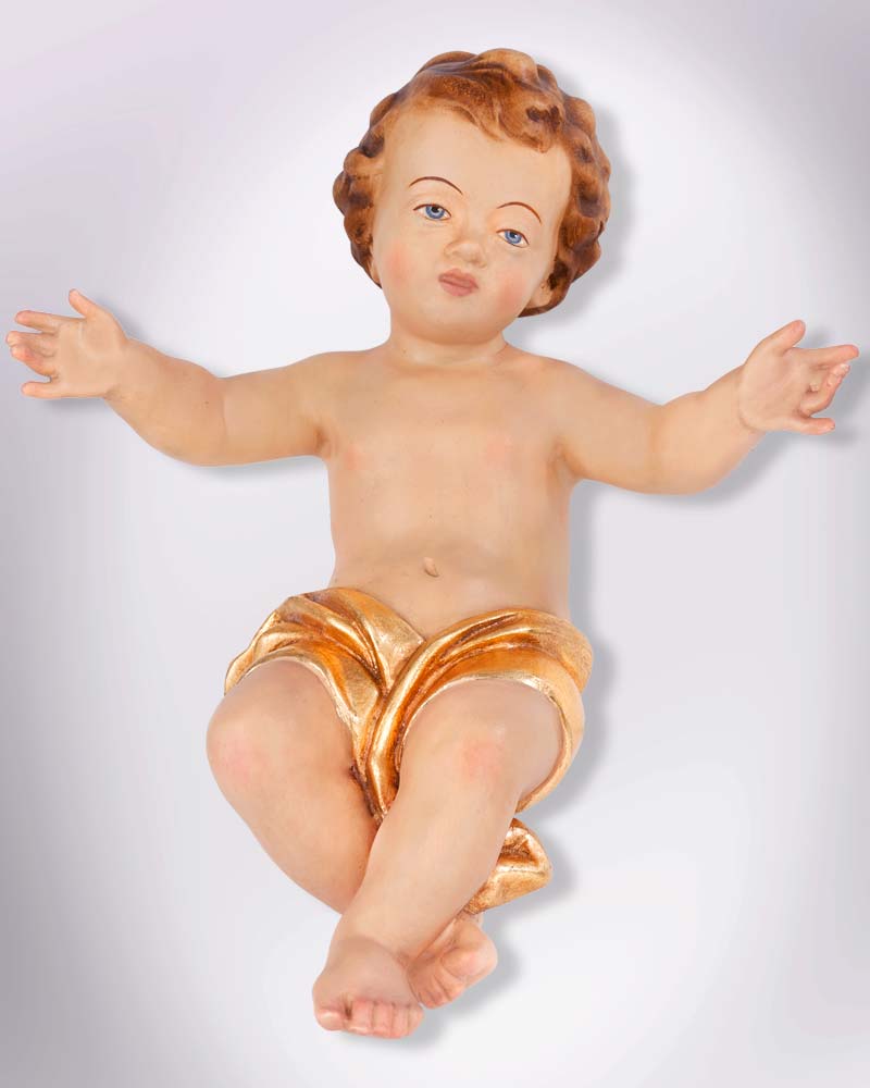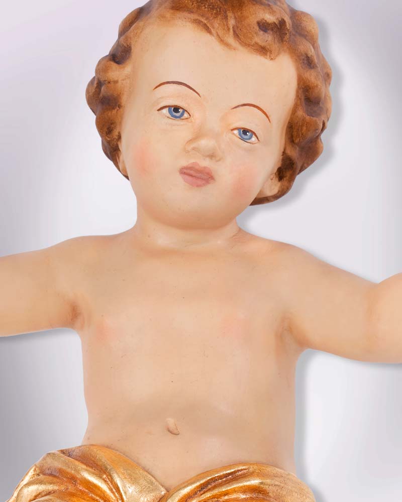 Jesukind 30 cm, geschnitzt koloriert Tuch vergoldet
