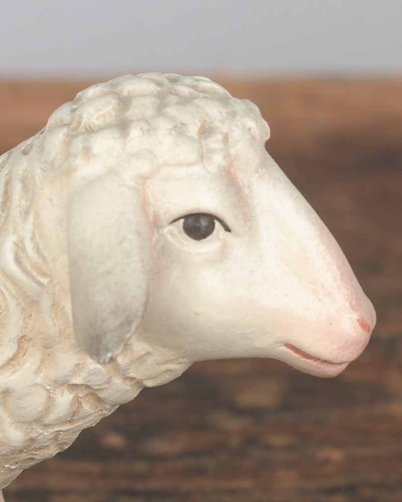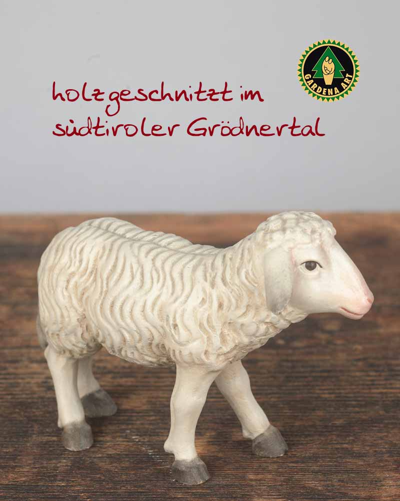 Schaf stehend für Krippenfiguren 28cm hoch, holzgeschnitzt und von Hand coloriert. Figur aus der berühmten Matteo-Krippe der Marke "Dolfi" aus dem Grödnertal, ca. 9 cm hoch passend für Figuren mit 28 cm Höhe