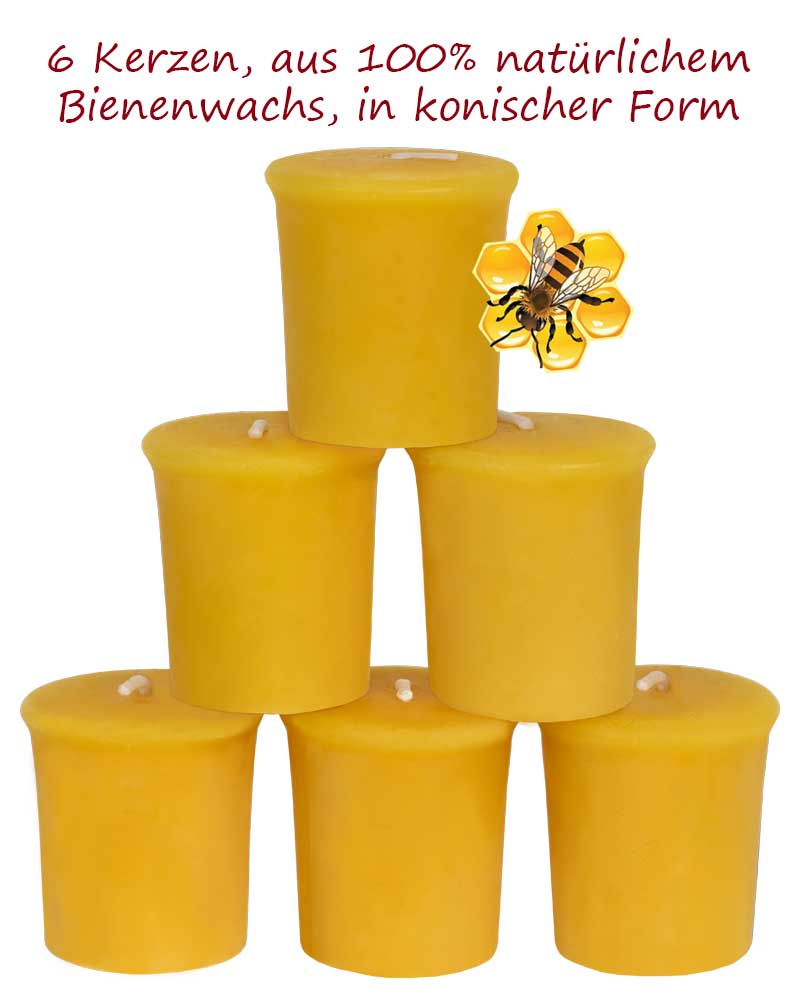 6 Stumpenkerzen 45 x 50 mm konisch 100% Bienenwachs gelb