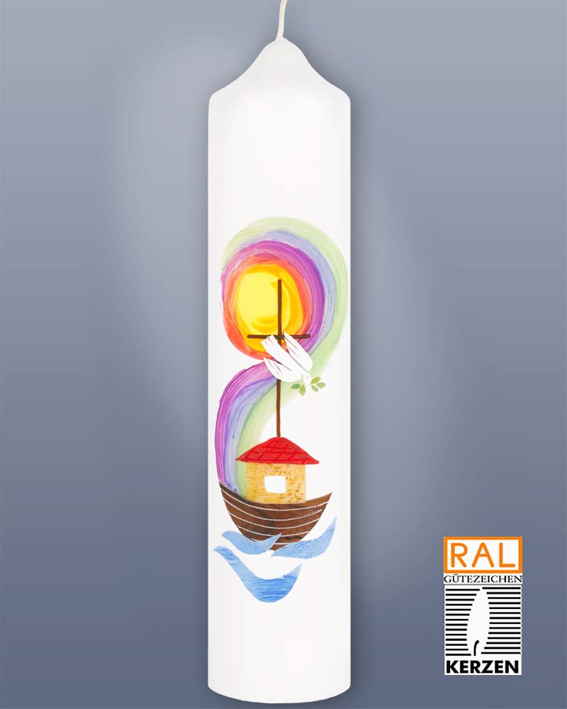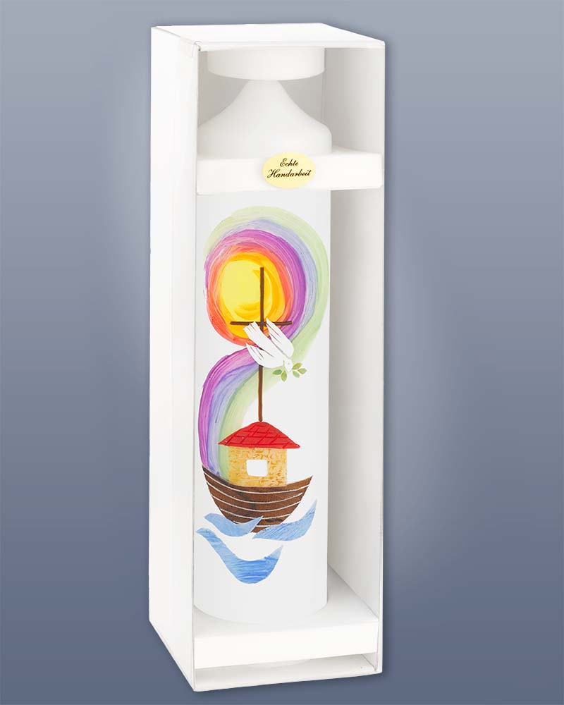 Taufkerze 265 x 60 mm Arche Noah + Regenbogen