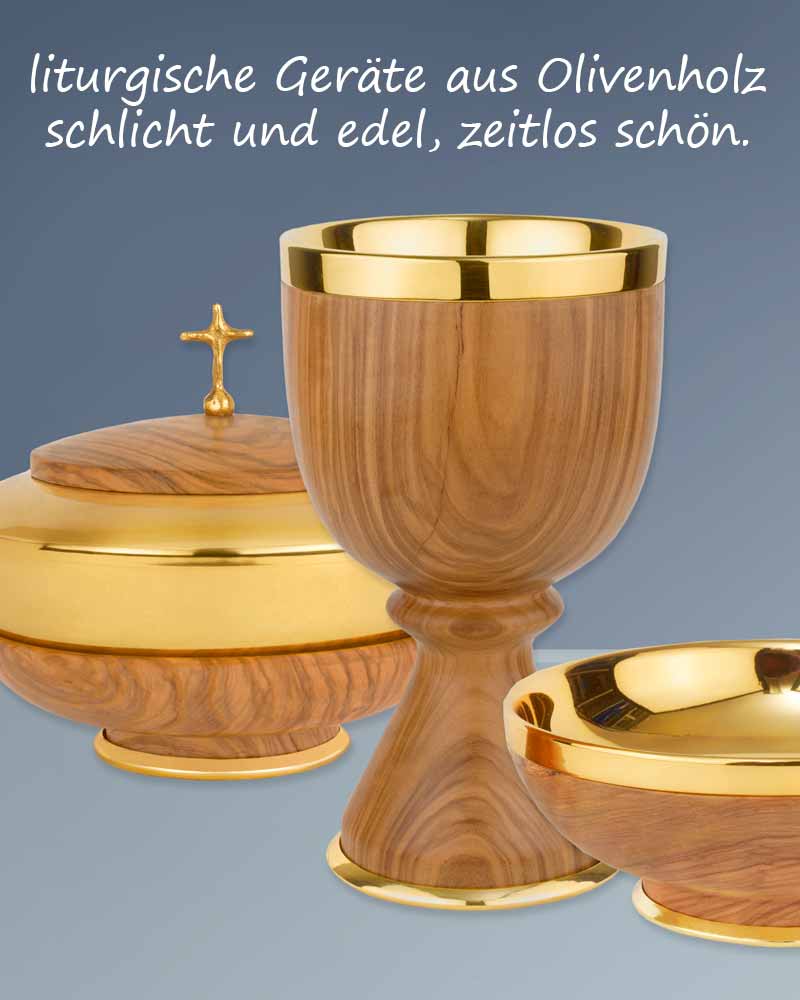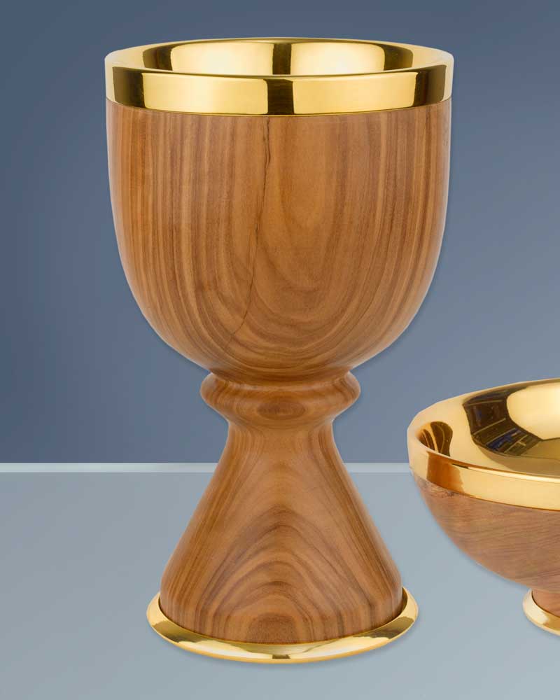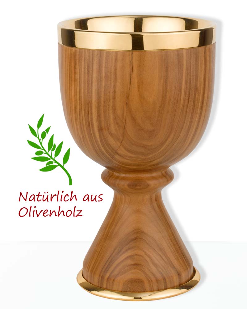 Kelch aus Olivenholz mit Einsatzcuppa 17 cm hoch, Ø 9,5 cm.