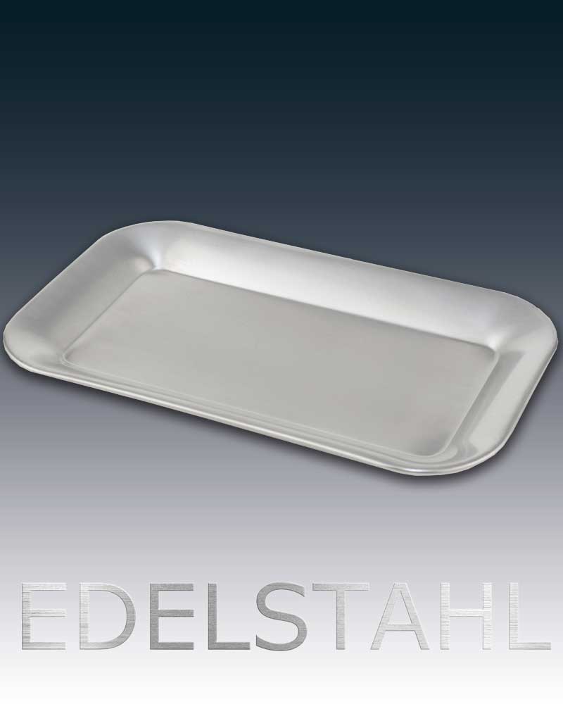 Edelstahl-Tablett, die robuste Oberfläche ist beständig gegen Kratzer und leicht zu pflegen, 21 x 13 cm.