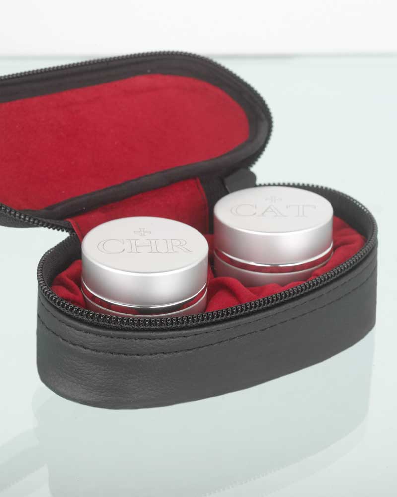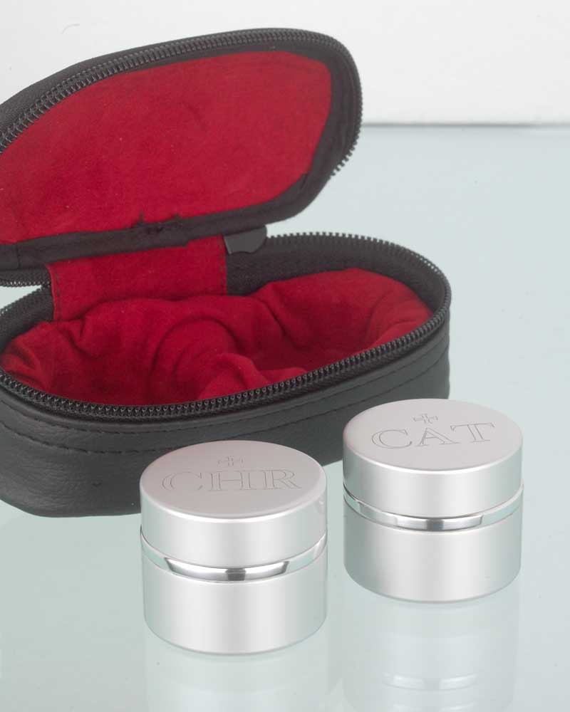 Zwei Ölgefässe CHR+CAT Aluminium im Etui
