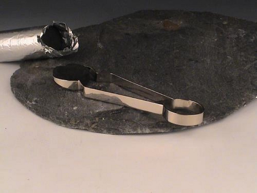 Kohlenzange vernickelt, mit praktischem Formgreifer für einen sicheren Griff, 17,5 cm lang.