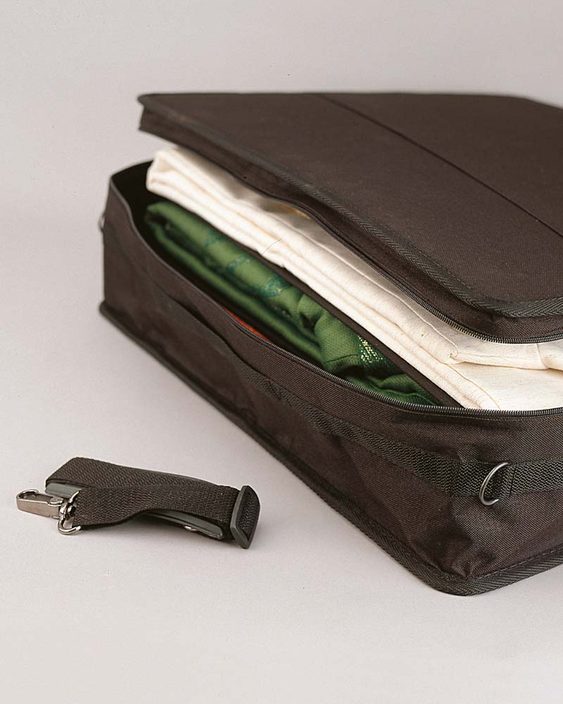 Paramententasche aus strapazierfähigem Nylon. Mit umfangreicher Inneneinteilung. 3 variablen Einlegebögen, 2 Gurten, Reißverschlusstasche, inkl. Trageriemen zum Umhängen 45 x 60 x 15 cm.