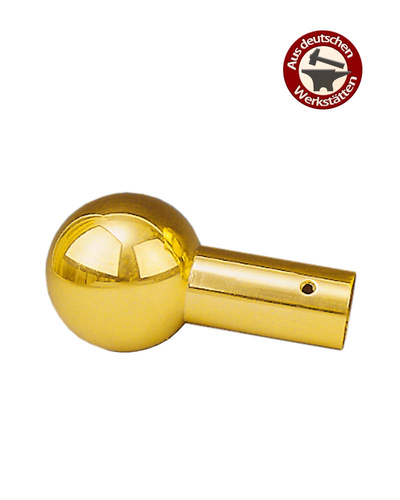 Fahnenabschluss aus Messing, anlaufgeschützt, für Stangen mit 35 mm Ø. Kugel 80 mm Ø.