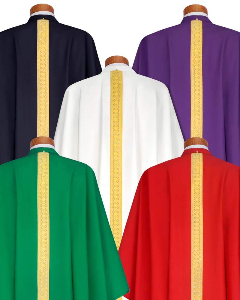 Preview: 5 Kaseln mit Stola & Bordüre in liturgischen Farben
