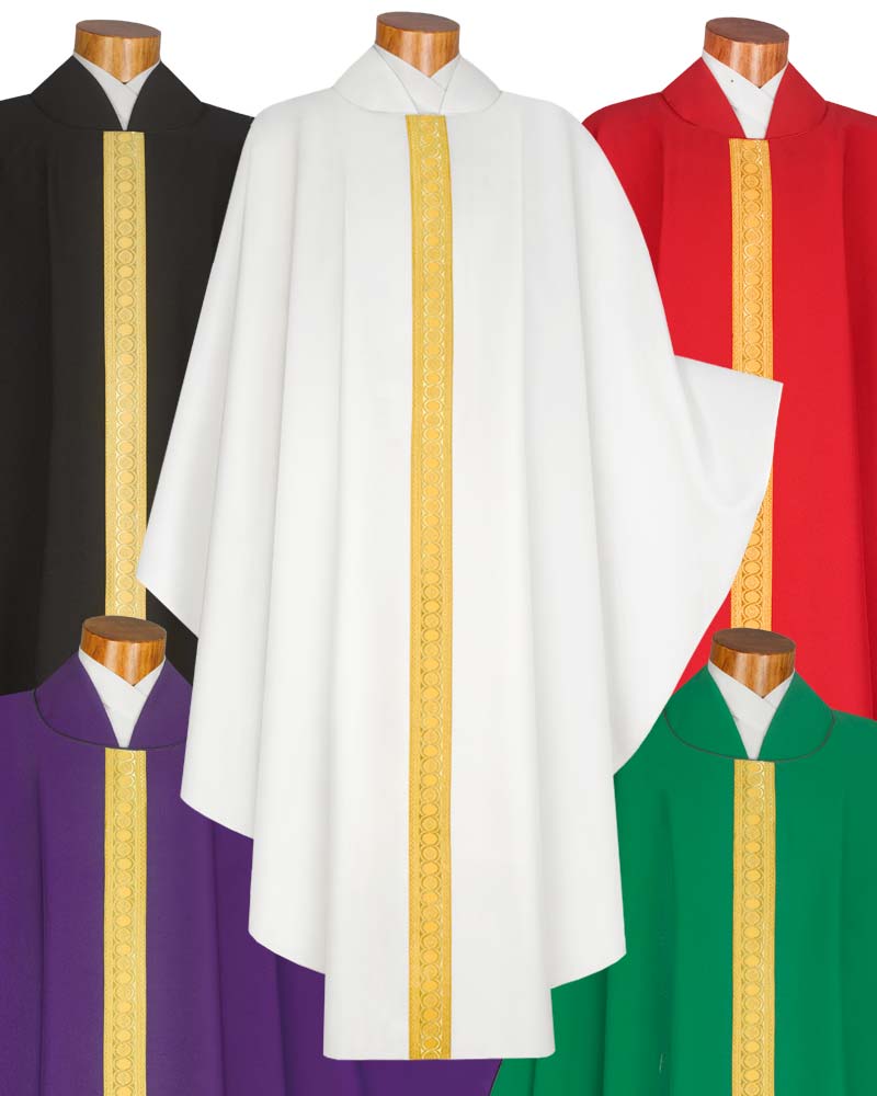 5 Kaseln mit Stola & Bordüre in liturgischen Farben