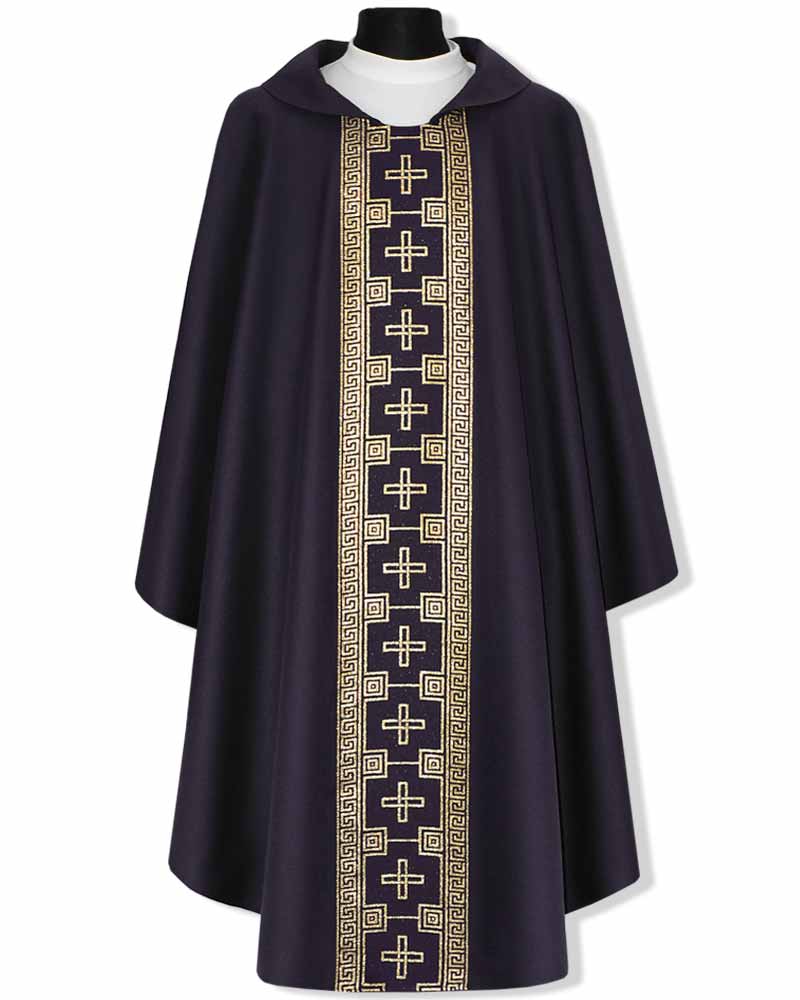 Kasel schwarz Kreuzbordüre mit Kragen und Innenstola
