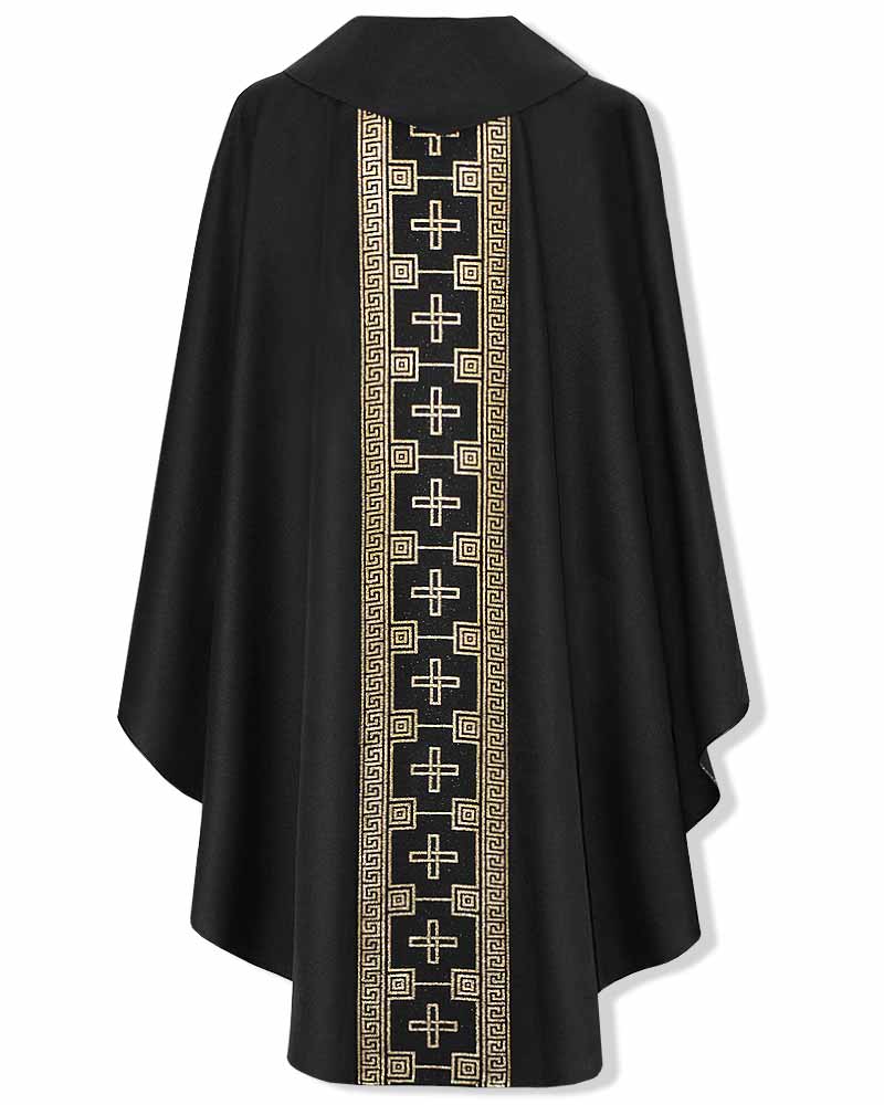 Preview: Kasel schwarz Kreuzbordüre mit Kragen und Innenstola