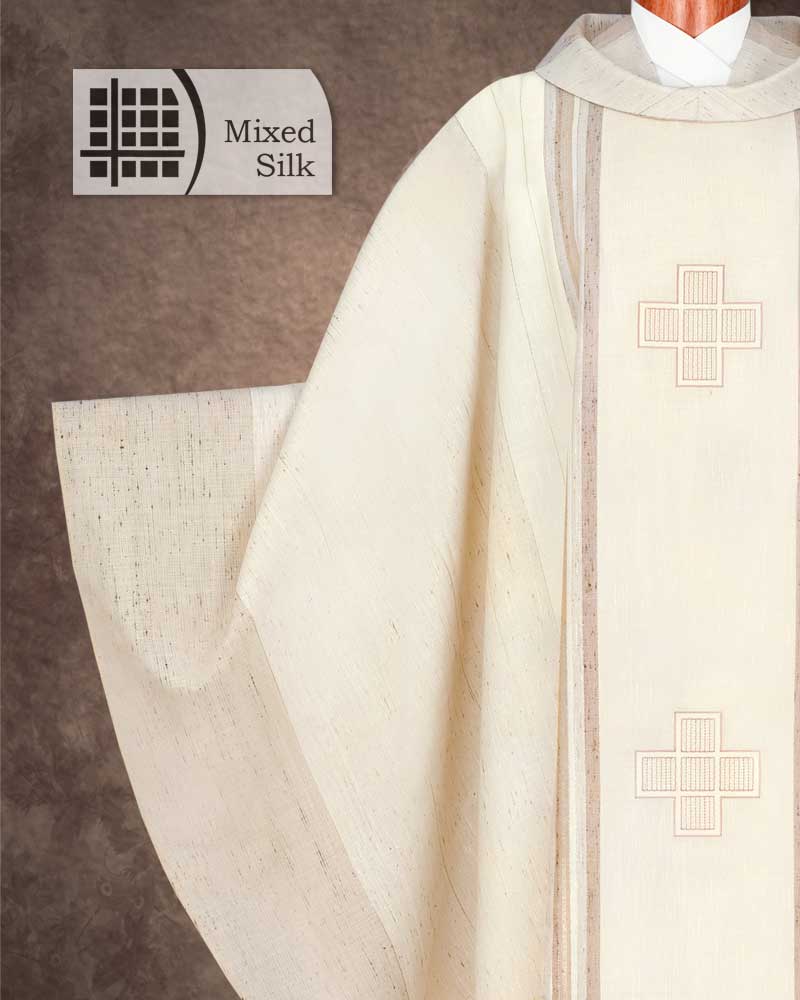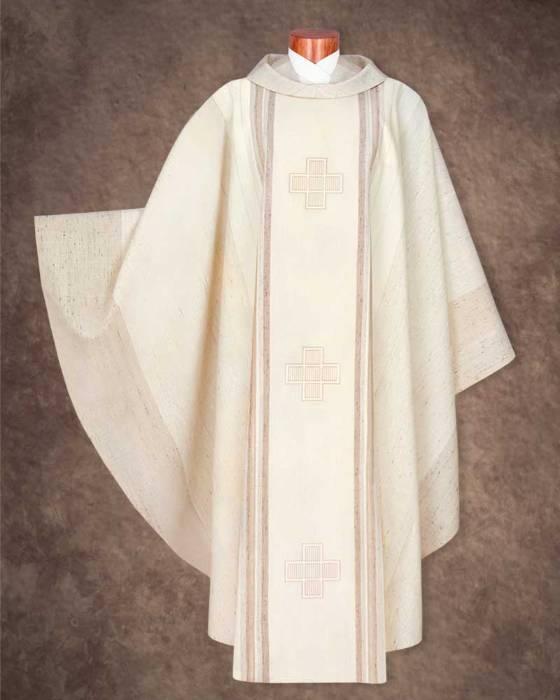 Kasel weiß 3 Kreuze gestickt Wolle & Seide mit Kragen