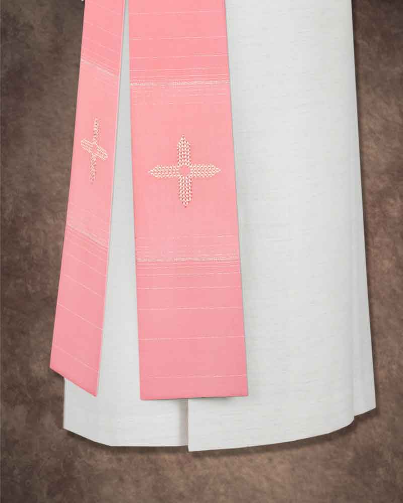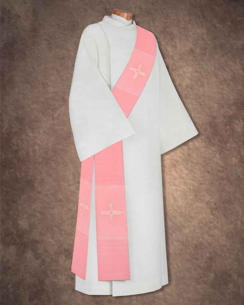 Diakonstola rosa 140 cm mit gesticktem Goldkreuz