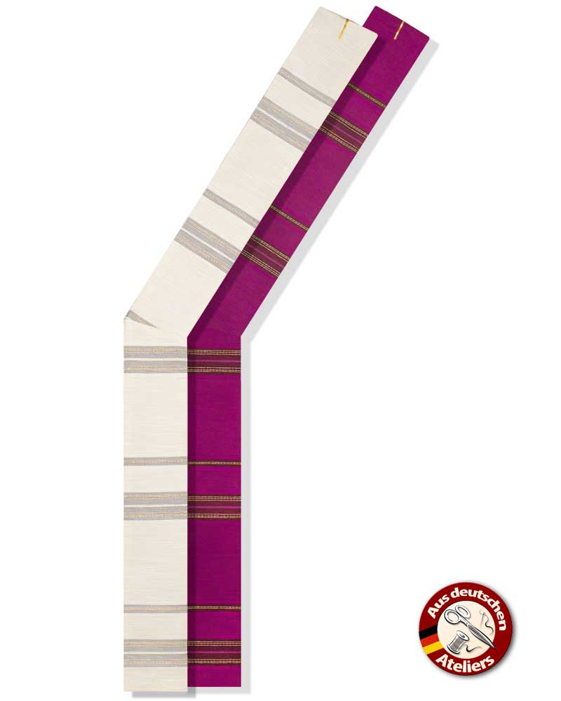 Diakonstola weiß & violett 145 cm mit Steifeneinwebe