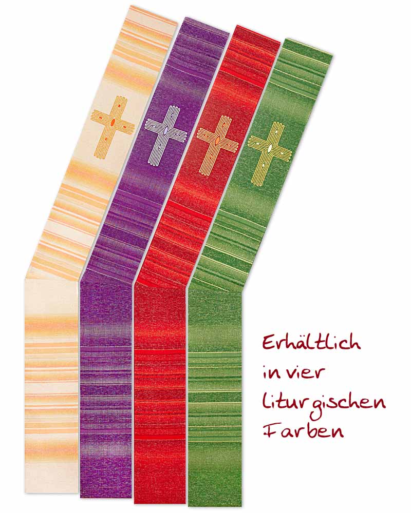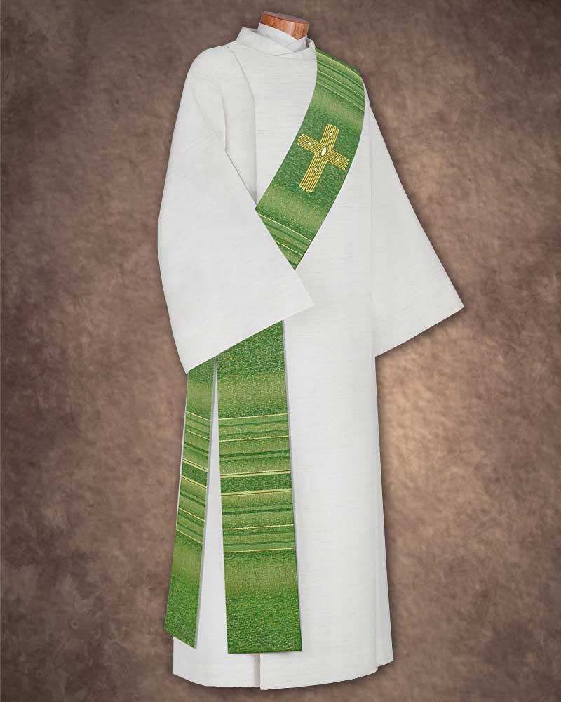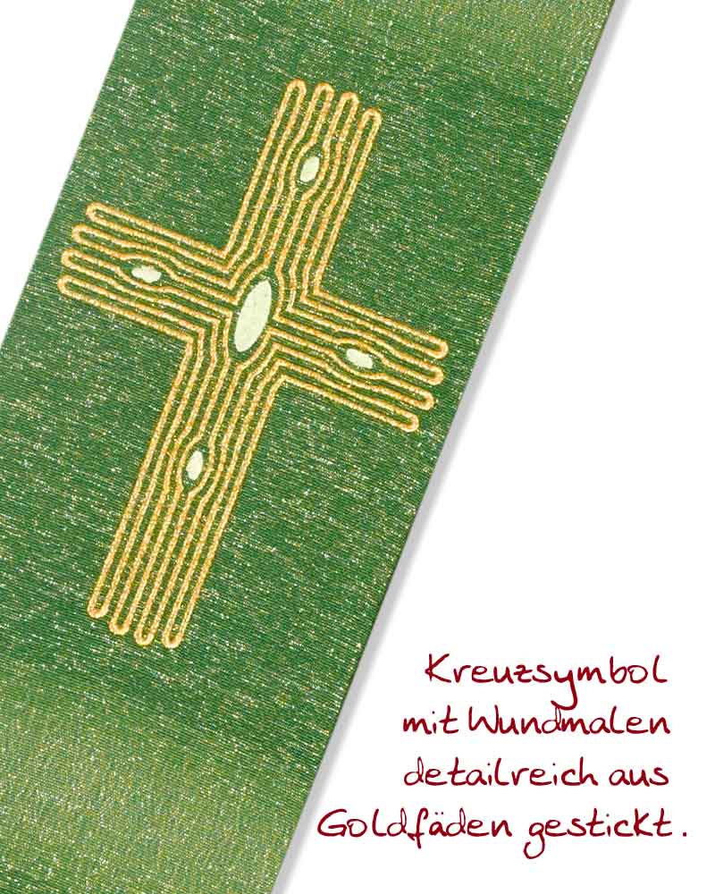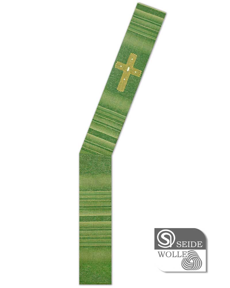 Diakonstola Wolle & Seide grün, Kreuz gestickt