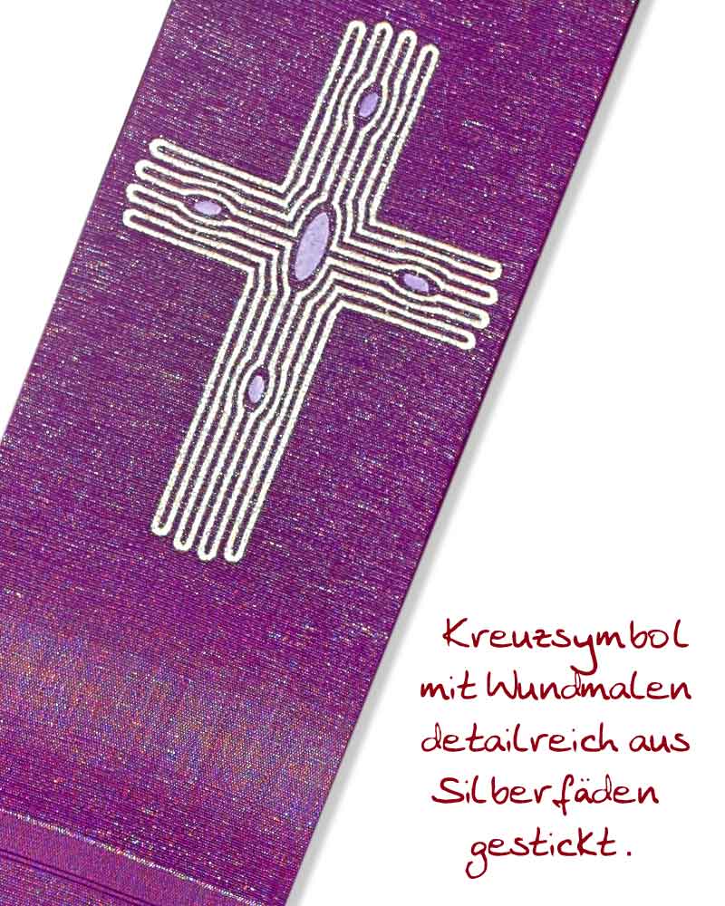 Diakonstola Wolle & Seide violett Kreuz gestickt