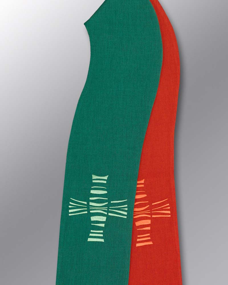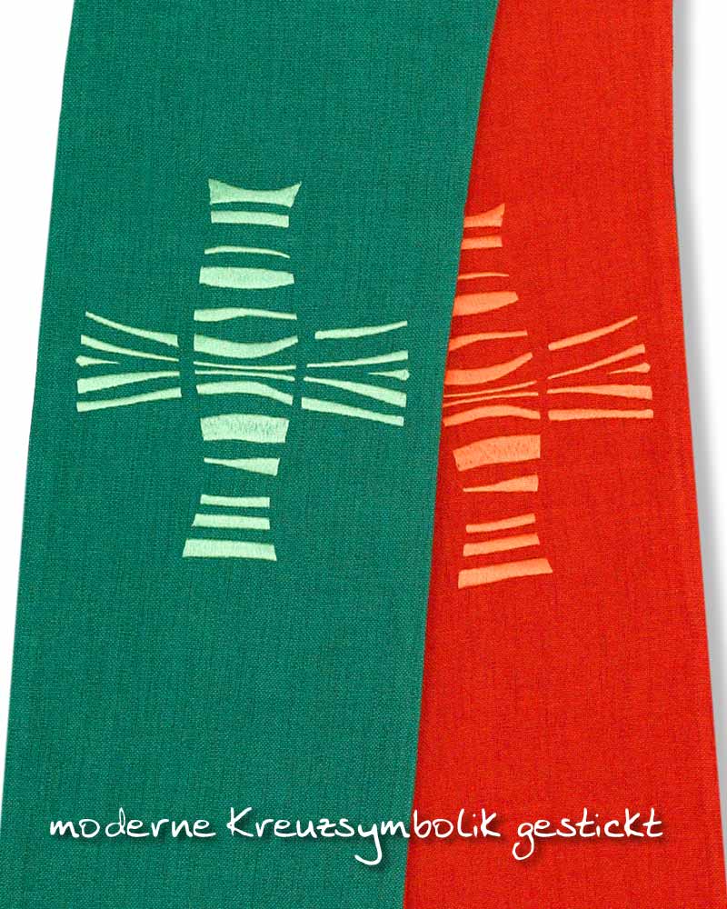 Doppelstola für Priester rot/grün  Kreuze gestickt