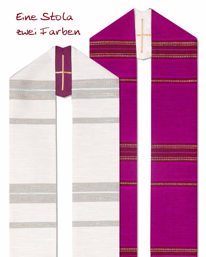 Doppelstola weiß & violett Handwebstoff gestreift 160 cm