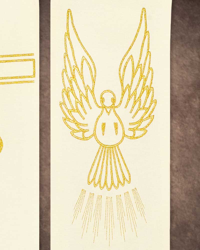 Die weiße Hochzeitsstola ist aus hochwertigem Mischgewebe gefertigt und eignet sich ideal für Trauungen im liturgischen Rahmen. Sie misst ca. 140 x 15 cm und ist mit einem goldfarben gestickten Kreuz sowie zwei ineinandergreifenden Ringen verziert – ein symbolstarkes Motiv für das Sakrament der Ehe. Die Stola ist dezent gesäumt, sorgfältig verarbeitet und wird ohne weiteres Zubehör geliefert. Sie unterstreicht würdevoll den festlichen Charakter der liturgischen Handlung und fügt sich harmonisch in den Altarraum ein. Dieses liturgische Parament ist auf die besonderen Anforderungen bei kirchlichen Trauungen abgestimmt.