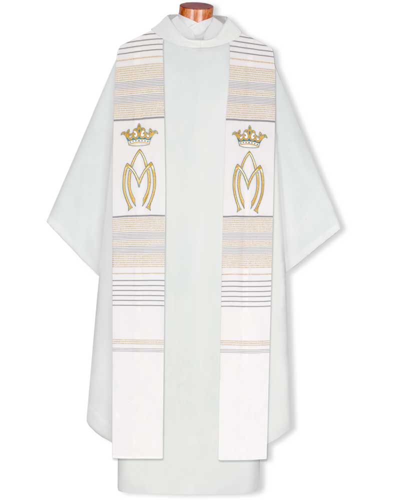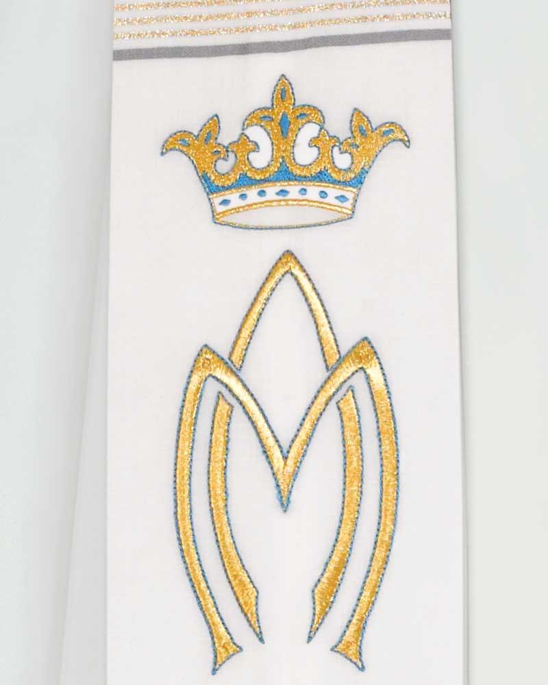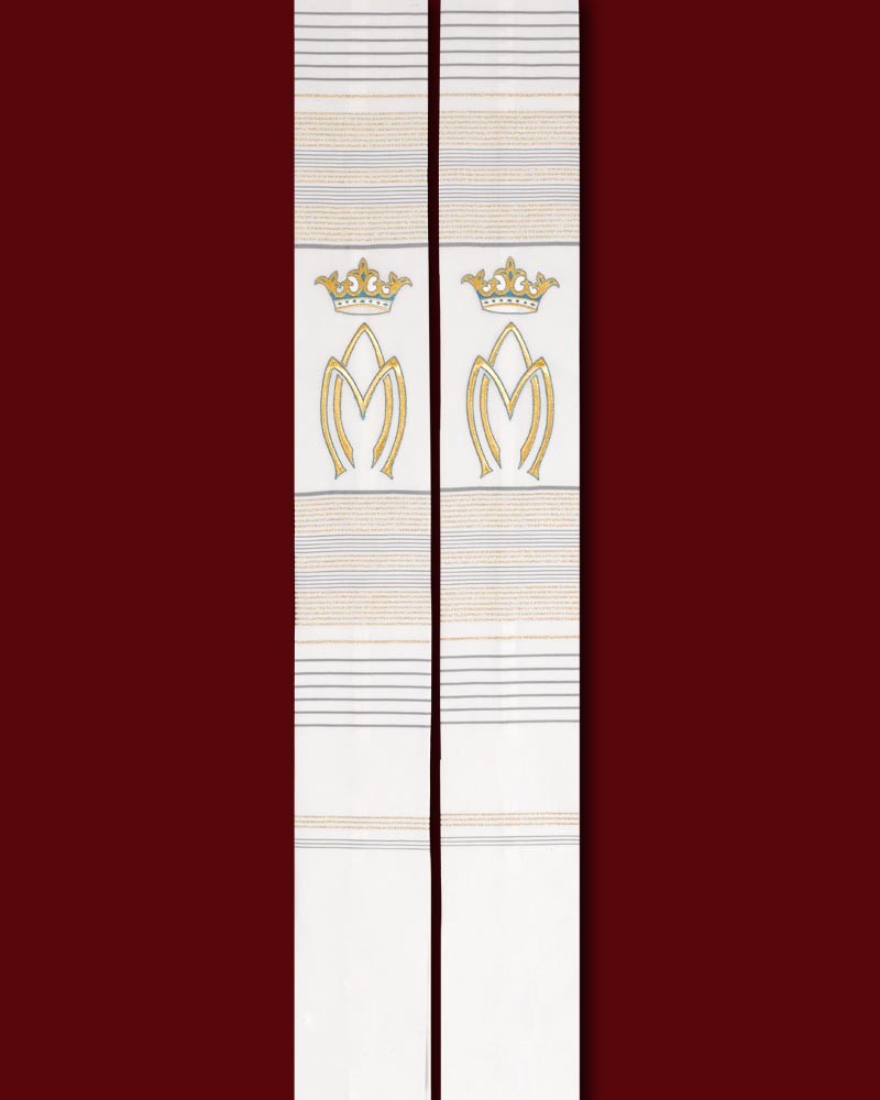 Marienstola mit gesticktem A&M und Krone, 130 cm, 95 % Wolle, 5 % Goldlurex.