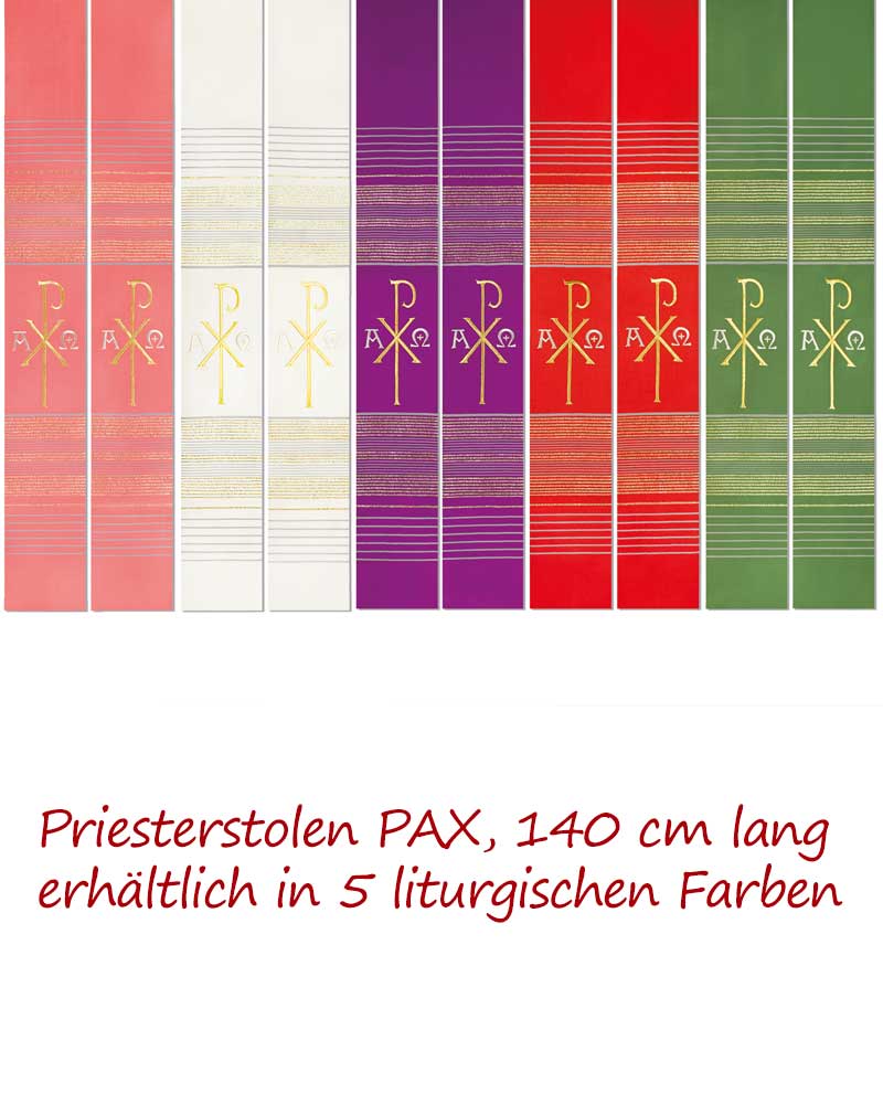 Priesterstola Pax und A + O violett mit Streifeneinwebe