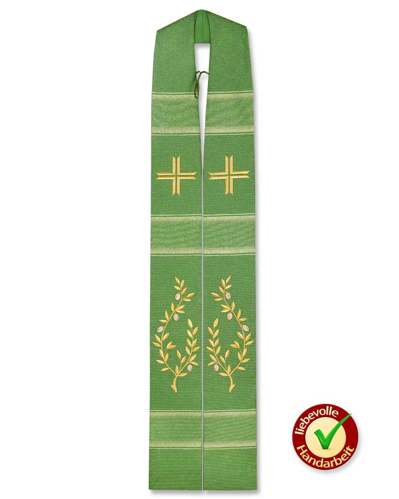 Preview: Stola des Friedens 140 cm grün bestickt Faconschnitt
