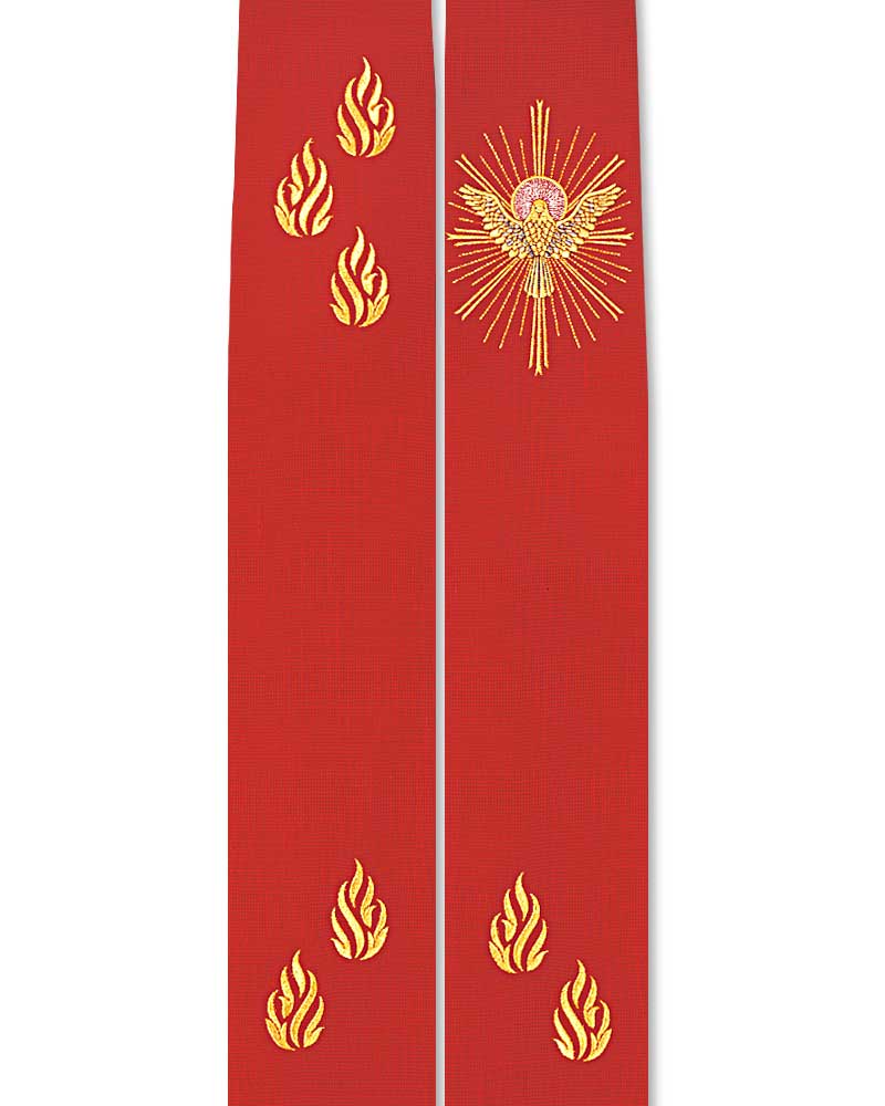 Stola aus 55% Wolle und 45% Viskose Wolle, mit feiner Stickerei, passgenauer Faconschnitt mit Nackenkordel, 160 cm lang, mit Seide gefüttert. Rot, "Hl. Geist".
