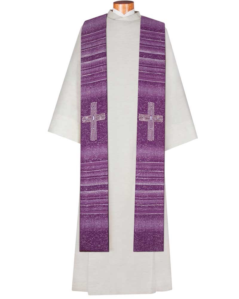 Preview: Stola violett Wolle & Seide 140 cm Kreuze gestickt