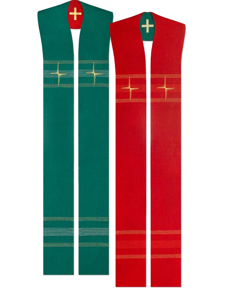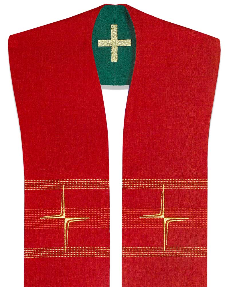 Preview: Wendestola Priester 140 cm rot & grün Kreuz gestickt