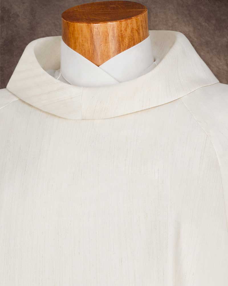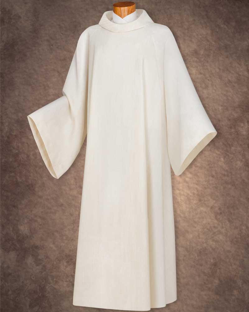 Albe beige meliert mit Rundkragen - als Unterziehalbe oder als Albe mit Stola zu tragen, 155 cm lang. Der hochwertige Stoff aus 40 % Wolle, 40 % Polyester, 20 % Leinen hat einen hohen Tragekomfort.