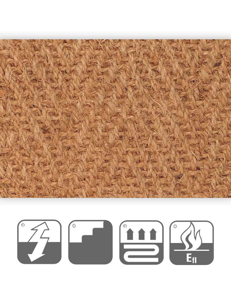 Kokosläufer als Rolle oder Coupon mit hervorragender Griffigkeit und hoher Elastizität vermindern das Unfallrisiko, haben eine enorme Strapazierfähigkeit, sind schmutzunempfindlich und natürlich schön. Alle Qualitäten sind in den Breiten 56 cm, 65 cm, 90 cm, 100 cm, 120 cm, 150 cm und 200 cm lieferbar und werden in der Länge nach Ihrem Wunsch auch mit Latex-Waffelrücken konfektioniert.