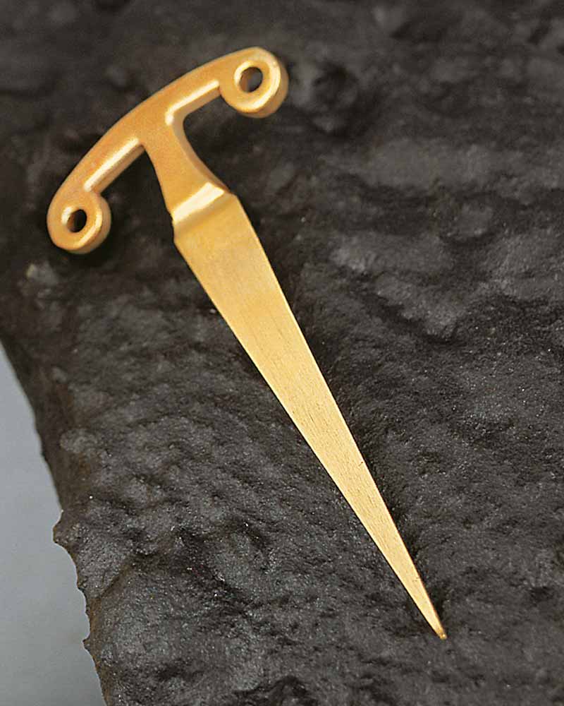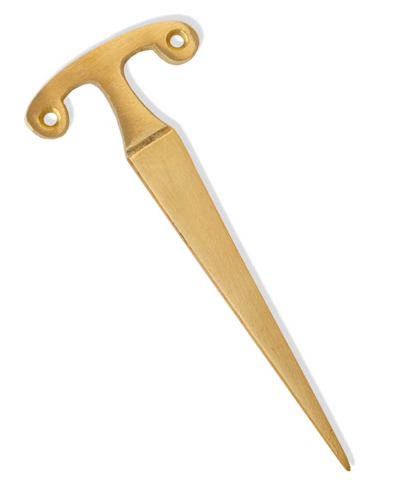 Dieser Kerzenlochbohrer ist 12 cm lang, aus Messing gegossen und poliert. Er eignet sich gut zum Bohren von Dornlöchern mit einer Tiefe bis 90 mm länge und 17 mm Durchmesser. Dieser kleine, nützliche Helfer sollte in keiner Sakristei fehlen.