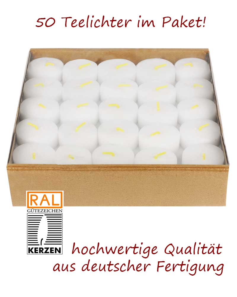 50 Teelichter Tray 16 x 38 mm Ø, ohne Hülle 5h Brenndauer