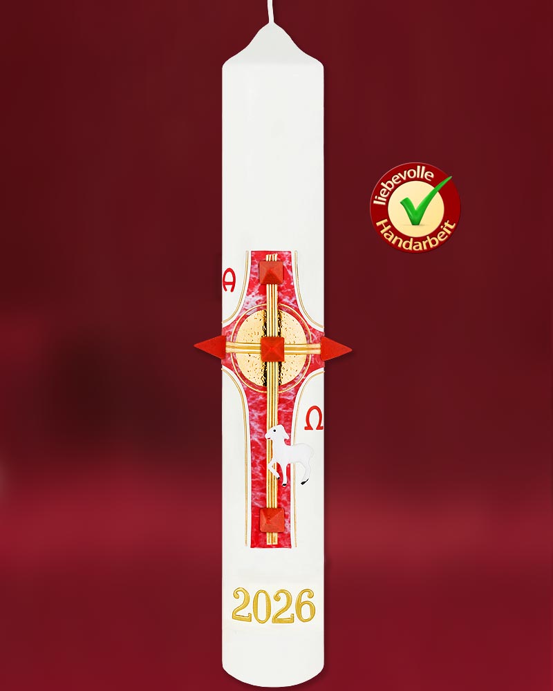 Osterkerze 400 x 60 mm, Kreuz in Gold, A + O