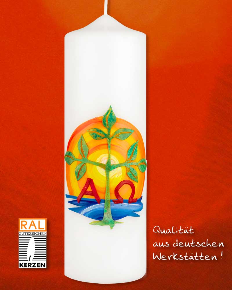 Osterkerze "Ostersonne & Lebensbaum" 225 x 70 mm