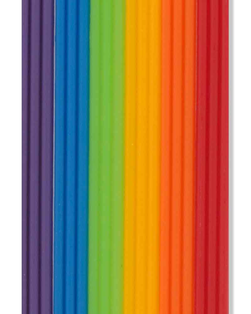 Zur Verzierung Ihrer Erstkommunionkerzen bieten wir Ihnen Wachsstreifen 2 mm x 230 mm in Regenbogenfarben an. Auf einer Lage sind