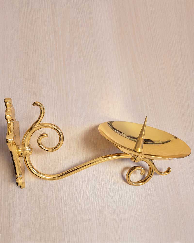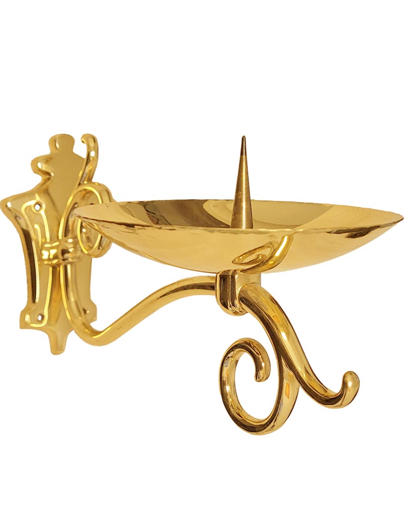 Dieses Wandewiglicht im gotischen Stil ist aus massivem Messing gefertigt und hochglanzpoliert. Es misst 27 cm in der Höhe und eignet sich ideal zur dauerhaften Wandmontage in Kirchenräumen. Der integrierte Dorn sorgt für sicheren Halt von Ewigen Lichtern mit Dornaufnahme. Die gotischen Stilelemente verleihen dem Leuchter eine klare architektonische Formensprache, die sich harmonisch in traditionelle Kirchenräume einfügt. Durch die hochwertige Verarbeitung ist es besonders langlebig und pflegeleicht.
