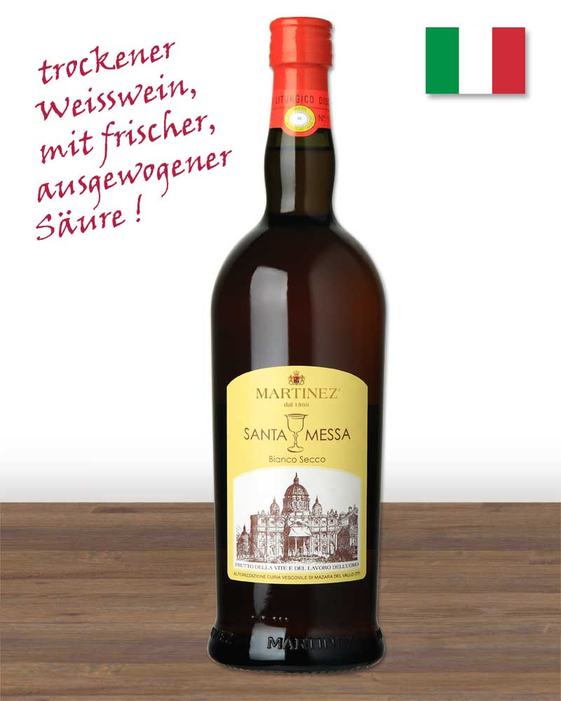 Das traditionelle Weingut wurde 1866 in Marsala, Sizilien gegründet. Mit mehr als 140 Jahren Erfahrung und einer hohen Wertschätzung für alte Bräuche, setzt die Familie auch heute noch diese Philosophie fort, um auch in Zukunft eine hohe Qualität gewährleisten zu können. Die Brüder Martinez sind ehemalige Schüler der Don Bosco Schule, die schon seit Generationen Weine für die heilige Messe nach „ex genimine vitis“ naturbelassen gefertigt. Der Wein wird sorgfältig nach kanonischen Anforderungen der heiligen Kirche zubereitet und durch die Kontrolle des Bischofs in der Diözese Mazara del Vallo überwacht. Das Weingut MARTINEZ produziert seit 1962 erlesene Messweine und zählt heute zu den namhaften Anbietern der Branche. Ein Erfolg, den man auch schmecken kann.