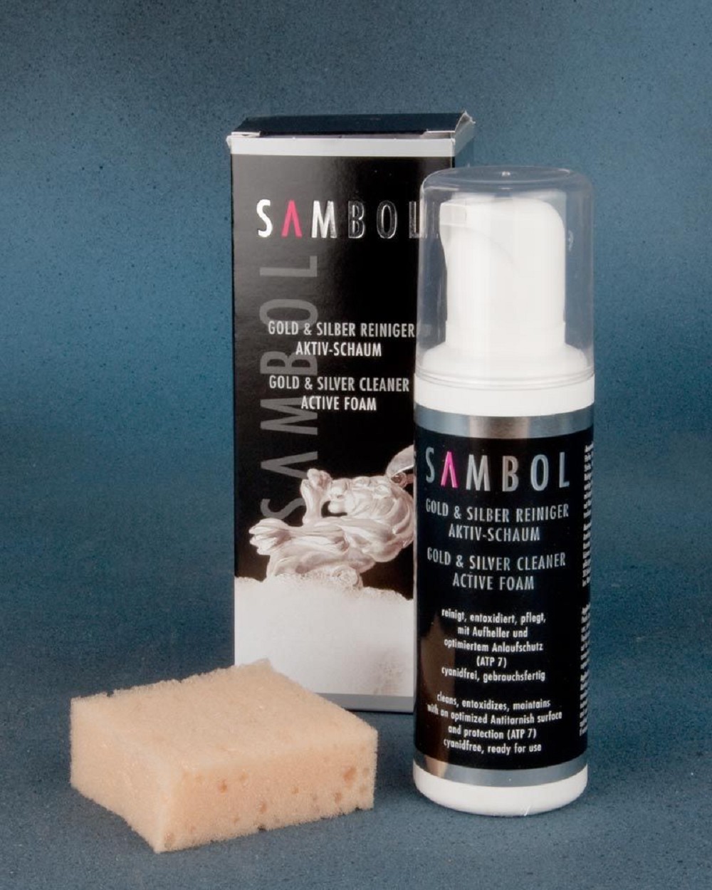 Silber und Goldpflegeschaum, 150 ml im praktischen Spender, mit Schwamm zum Auftragen. Zur schonenden Pflege für liturgische Geräte mit versilberten und vergoldeten Oberflächen